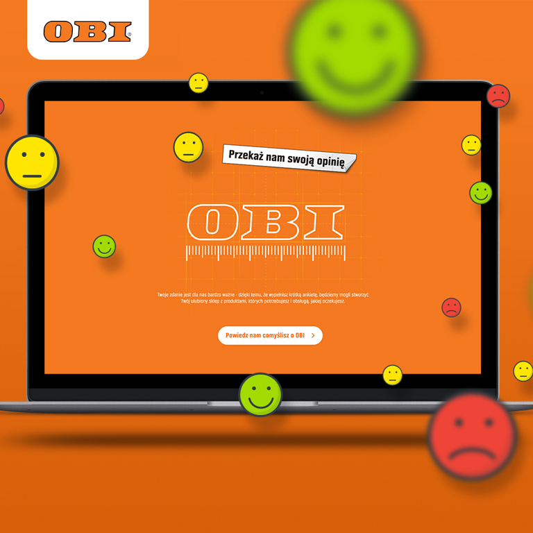 Na zlecenie OBI stworzyliśmy system ankietowy do mierzenia NPS oraz przygotowaliśmy materiały promocyjne zachęcające do wzięcia udziału w badaniu. Wdrożyliśmy ankietę, dostępną na responsywnej stronie www (RWD) dostosowującej się do wielkości ekranu komputera lub smartfona. Klienci mogli wziąć udział w badaniu również bezpośrednio w sklepach – za pomocą interaktywnych infokiosków.